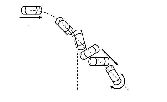 В рассмотренном примере проявился сложный характер движения, характеризуемый наличием двух независимых составляющих: вращательного и поступательного. Частота вращения ω пропорциональна скорости v и обратно пропорциональна радиусу виража R . Попутно заметим, что в реальности приходится сталкиваться с автомобилями разных размеров, массы. Как это сказывается на скорости вращения? Может ли инициировать вращение ряд инцидентов: столкновения с препятствиями и другими машинами, состояние шин, дорожного полотна. Выносим эти вопросы на самостоятельное изучение.