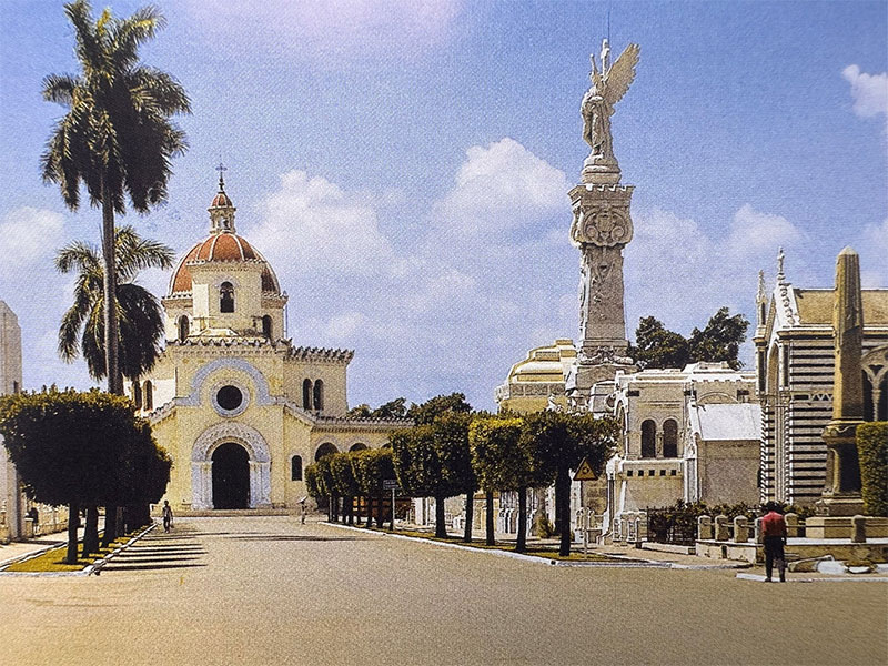 Пройдя ещё пару кварталов по 23-й улице, мы пришли к фундаментальному забору ограждавшего огромное «сементерио»-кладбище Колон (Necropolis de Cristobal Colon). Мы поначалу не собирались туда идти, хотя ни разу там не были, но много слышали. Но тут у главного входа притормозил автобус и из него вышла большая группа испанских туристов с гидом, который повёл их к кассам, где быстро приобрёл видимо заранее приготовленные билеты и раздал их своим туристам. Жена вдруг захотела пойти и посмотреть тоже, мы уже знали хорошо какие бывают роскошные и красивые мавзолеи и усыпальницы на католических кладбищах. Подойдя к кассам, приобрели входные билеты за 5 кубинских песо и прошли внутрь, тут же крутилась маленькая симпатичная смуглая девочка лет пяти – дочь кассирши, жена вручила ей пару конфет, та довольно улыбнулась и пролепетала:
