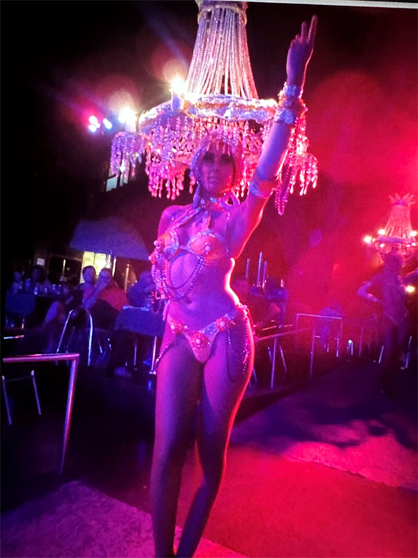 Шоу началось вовремя и на нас обрушилась в полной мере вся эта магия танца, музыки и света. Я раньше был уже здесь один раз на этом шоу, когда ещё работал на Кубе в далёких 90-х, а вот мои дамы нет. Они сидели зачарованные и пытались разглядеть всех проплывающих и пролетающих мимо нас танцовщиц, дочь даже пыталась из-под стола как-то незаметно фотографировать эту феерию без вспышки. Звуки маракасов и румбы менялись мощным тутти барабанов и горнов. Соблазнительные мулатки пересекали навесные мосты, спускались по волшебным лестницам, соскальзывали по перилам, и всё это было в сопровождении дыма, шума, гама, треска, всполохов огня, бликов света и теней на фоне естественных декораций из невероятных по форме пальм и цветов под открытым небом с живописной драпировкой из ковра сверкающих тропических звёзд.