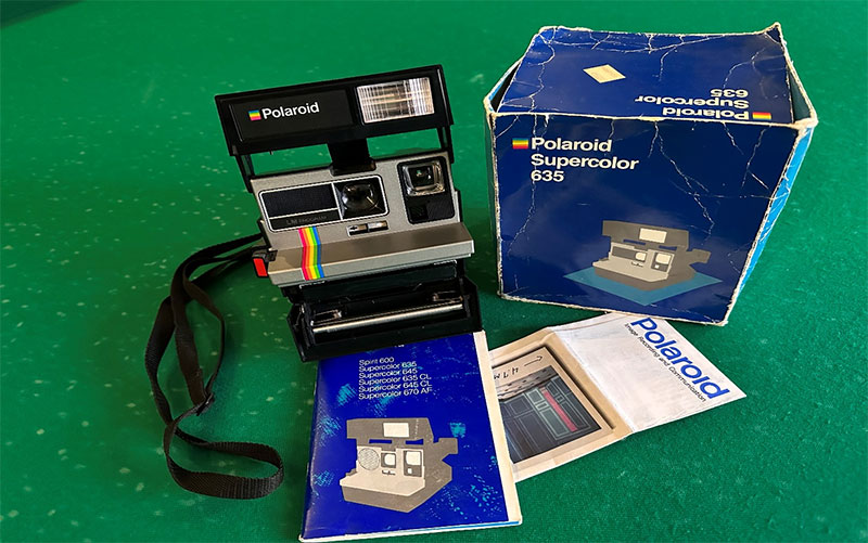 Старый фотоаппарат «Полароид» с моментальными снимками.