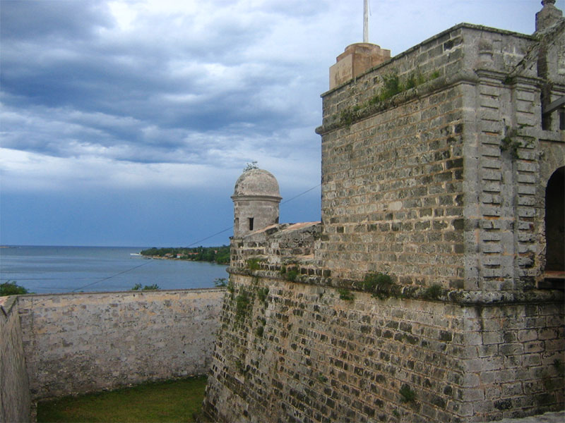 На наше удивление старую крепость Хагуа отреставрировали и даже сделали в ней небольшой музей. В наше время там были просто красивые развалины куда бегали играть наши мальчишки. Купив билеты, мы зашли по подвесному мосту в старую крепость в сопровождении гида, говорящего по-русски. Это была худенькая женщина по имени Сараи, некогда учившаяся в Союзе на биолога. Она провела нас на верхнюю площадку артиллерийской батареи, старые пушки которой своими жерлами хищно уставились в сторону входа в залив со стороны Карибского моря. Заглянули в круглую смотровую башню с бойницами для аркебуз караульной охраны, типичную для всех старых испанских крепостей. Сараи рассказала, что крепость была построена за семь лет по проекту военного архитектора Хосе Тантете в 1738 году по приказу испанского короля Филиппа V, за сто лет до основания города Сьенфуэгос. Крепость Хагуа в то время стала третьей по значимости на острове после крепостей в Сантьяго и Гаване. Даже знаменитый пират Френсис Дрейк не смог её взять штурмом и прорваться в залив для грабежа испанских поселений.