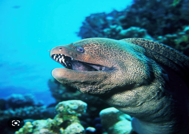 Ныряя за ракушками и периодически продуваясь, в очередном погружении я так увлёкся процессом оттирания моллюска ракушки от кораллового рифа, что не сразу заметил какую-то возникшую справа от меня тень. Повернув голову через треснутое стекло маски, я увидел страшную голову неведомого до селя мною рыбного чудовища, пасть которого с маленькими зубами медленно открывалась и закрывалась в такт дыханию. Выглядело это чудовище так ужасающе и устрашающе, что я с испугу чуть не обосрался, прямо в воде. Честное пионерское! Она мне до сих пор иногда снится по ночам – эта голова, кажется, что она даже пытается о чём-то поговорить со мной.