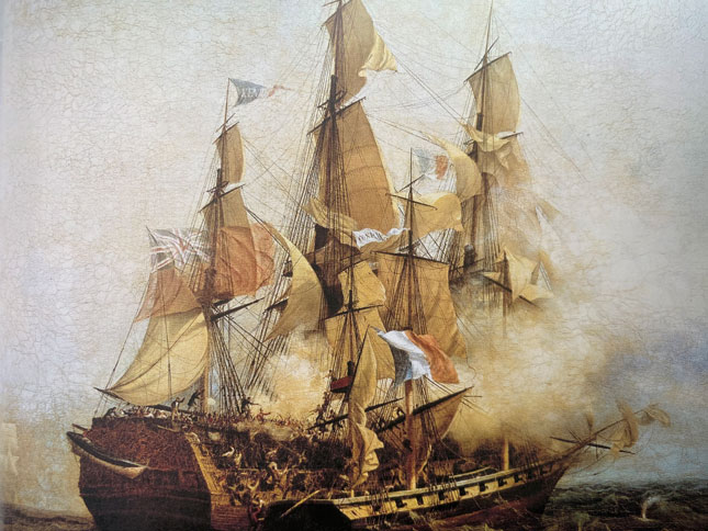 Картина Луи Гарнерея, изображающая захват «Кента» знаменитым корсаром Робертом Сюркуфом, 1800. Музей Сен-Мало, Франция.