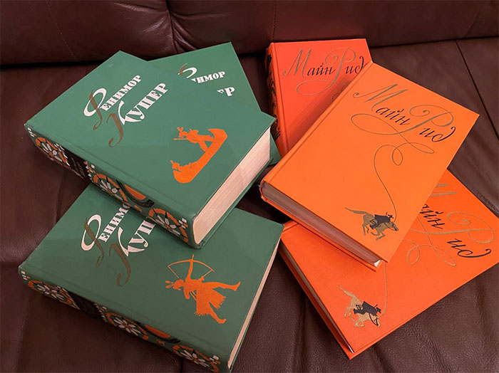Книги эти были 6-томники Майн Рида и Джеймса Фенимора Купера. Да, те самые знаменитые зелёные и оранжевые тома. Издания Государственного Издательства Детской литературы Министерства Просвещения РСФСР 1956 и 1961 годов. Я читал их запоем, от «Зверобоя» и «Последний из могикан» до «Мерседес из Кастилии» и «Красный Корсар» Купера, и «Белый вождь» и «Квартеронка» до «Мароны» и «Всадник без головы» Майн Рида.