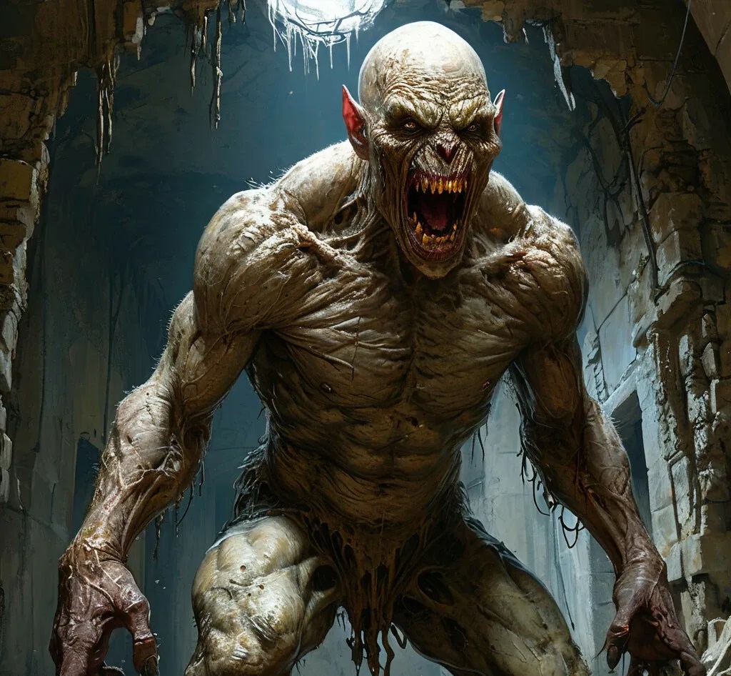Максим, здоровенный мужик в самом расцвете лет, был повержен. И не просто повержен, а сейчас в его глотку вцепилась тварь, которую можно увидеть только в ужастиках. Голая, некогда бывшая женщина, а ныне наполовину лысый голем с серой кожей и красными, как тлеющие угольки, глазами, тянула из Максима остатки жизни, нервно шипя и повизгивая. Мужчина лежал на полу, револьвер тоже, отброшенный к стене небольшой комнатки. А ещё здесь был свет, отличный свет, несколько ламп освещали монстра, как будто… всё это разыгрываемый спектакль или сон.