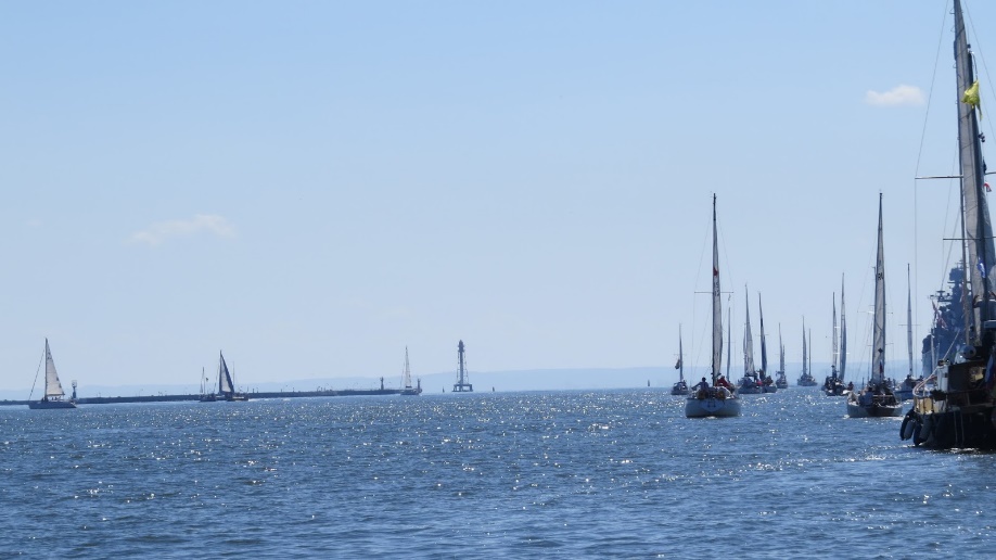 От организатора участия яхт поступил сигнал – пора. Паника, поднятая волной, сменилась на лёгкую суету. Яхты отшвартовывались, выходили в канал, стараясь не задеть друг друга. Кто-то кого-то торопил, кто-то громко давал советы, интересовался целью маневров других яхт. Здесь мы получили ещё один практический урок от Александра – шкипер САМ управляет своей яхтой и несёт полную ответственность за свои маневры. Поэтому принимать помощь и следовать советам можно только если шкипер этого попросит и только от того, кого он попросит.