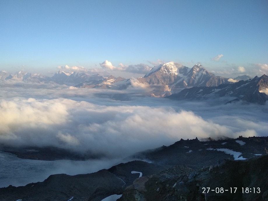 А виды действительно восхитительные. Сидишь такой над облаками. Где-то внизу у людей серое небо, возможно дождь. А с другой стороны (с верхней), их серое небо – просто пушистые облака, а над ними – голубое небо. Да, чем выше забираешься, тем прекрасней виды. Может быть они прекрасны, потому что не часто так высоко забраться случается. Для тех, кто здесь находится постоянно или долго – это обычные виды. Они к ним привыкли. Внизу они тоже бывают. Когда внизу, они не восхищаются, а удивляются тому, что там внизу всё не совсем так как наверху. Я спрашивал. Они просто живут. Не отрицают того, что здесь хорошо, но это хорошо для тех, кто бывает здесь не часто. А для них обычная рабочая обстановка.