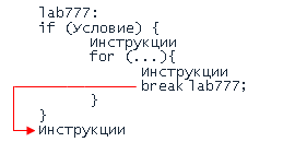 Эта проблема решается в Java использованием меток. Любая инструкция в программе может быть снабжена меткой, которая представляет собой содержательное имя, позволяющее сослаться на соответствующую инструкцию.