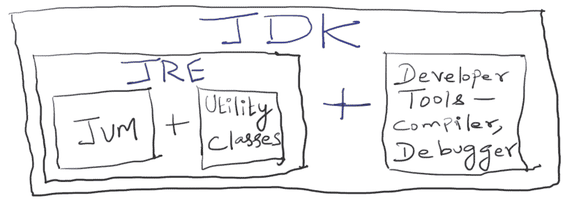 Несмотря на то, что JRE входит в состав JDK, фирма Oracle распространяет этот набор и отдельным файлом. Это вызвано тем, что установка JRE является необходимым и достаточным условием для выполнения Java-программ. Однако для разработки программ JRE недостаточно, необходимо установить пакет JDK, который может установить и JRE и дополнительные компоненты.