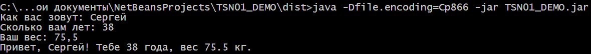 java -Dfile.encoding=Cp866 -jar TSN01_DEMO.jar
