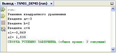 Рассмотрим пример консольной программы для решения квадратного уравнения.