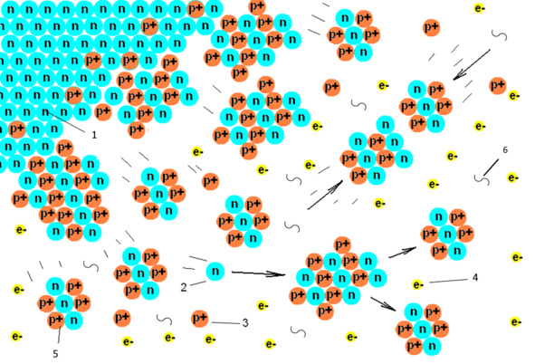 Рис. 2. Некоторые реакции образования ядер элементов из нейтронного вещества