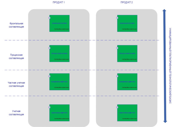 При переходе к современным архитектурным и технологическим принципам необходимо учитывать первичность продуктового подхода, когда деятельность организации определяется тем, какую ценность она приносит клиентам и/или партнерам. При этом ценность в современном мире реализуется автоматизируемыми продуктами – цифровыми продуктами. Бизнес-процессы сегментируются в соответствии с продуктовой логикой. Но далеко не все процессы могут быть ограничены лишь одним продуктом: