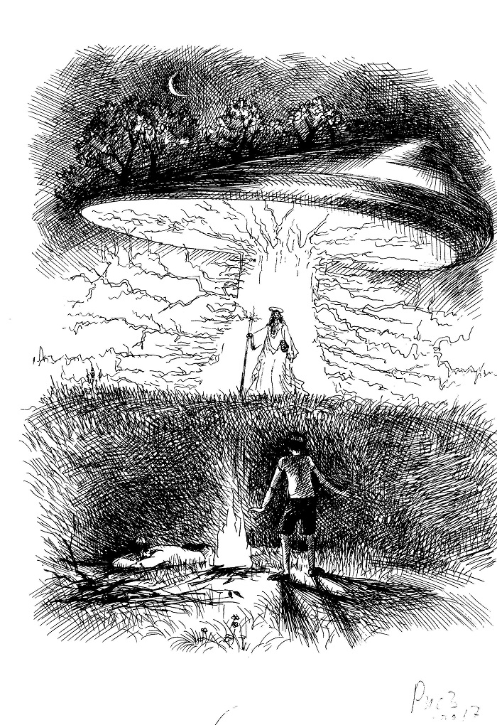 Оказавшись на траве возле аппарата, он, совсем как обычный человек, нагнулся и сорвал травинку. Потом пришелец, или представитель жизни параллельного мира направился в мою сторону. Я рванулся к отцу и начал колотить его по плечу, чтобы разбудить, но сон его был крепким и он как назло не просыпался.