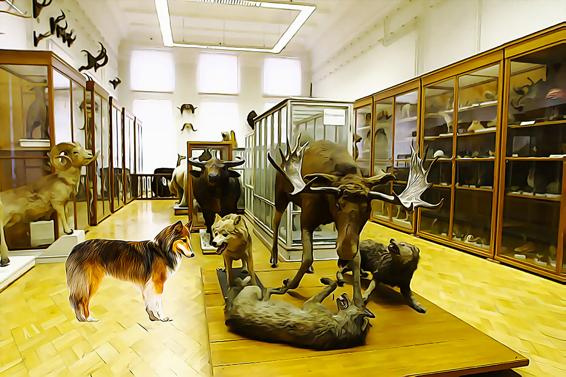 Ещё до входа в музей я почувствовал негативную и гнетущую атмосферу. Однако не прислушался, легкомысленно отмахнувшись лапой. Подумал, это со мной что-то не так, обычное недомогание. А внутрь зашли – я сразу косулю увидел. Обрадовался и, завиляв хвостом, побежал с ней знакомиться – да тут же и замер как вкопанный. Косуля вся такая недвижно стоит, и глаза немигаючи в одну точку уставились. Оглянулся я по сторонам, а вокруг все звери и птицы неживые. Самые они настоящие, только глаза стеклянные. У меня от ужаса шерсть на загривке вздыбилась, и сразу зелёная тоска навалилась. Я и раньше слышал, что люди из животных чучела делают, но думал, что этим только браконьеры занимаются. А это, оказывается, общечеловеческая забава.
