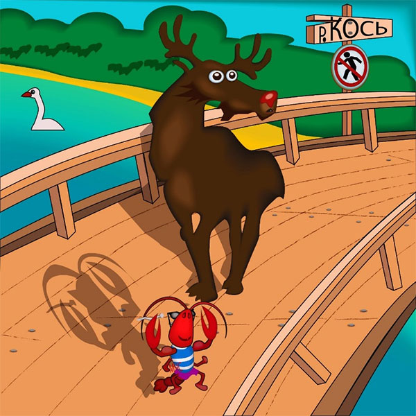 – Добрый день, беспокоит Вас Лось.Наступил на мосту я на гвоздь,Это мост через реченьку Кось.[5]Я стою тут на мрачном мосту,Как на строгом охранном посту,И сойти я с него не могу.Не могу оторвать я копыто,А копыто, как будто прибито.– Уважаемый Лось,То, что с Вами стряслось,Это так поучительно.Там подход освещён,А проход запрещёнБригадой строительной.Вы попали впросак,Хотя видели знак,Это так непростительно.Все обязаны знать,Что знак нарушатьНепозволительно!