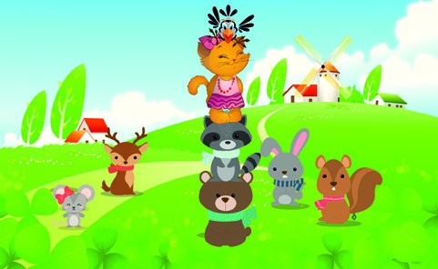 А Рыжинка придумала изобразить пирамиду. Сама запрыгнула на верхушку и начала громко и весело петь, изображая «Бременских музыкантов»: