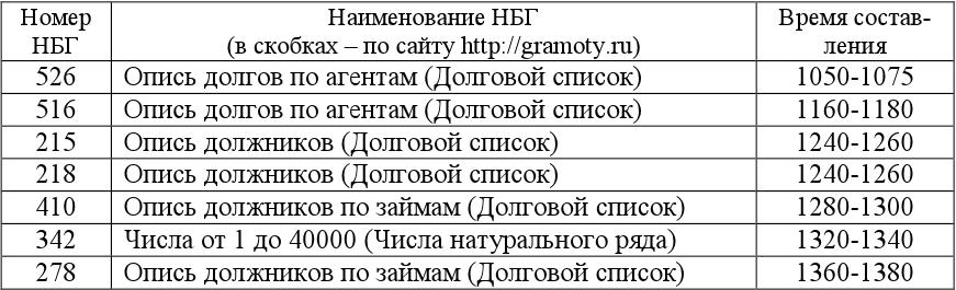 (7) Источники – А. В. Арциховский. НГБ, 1963; http://gramoty.ru.