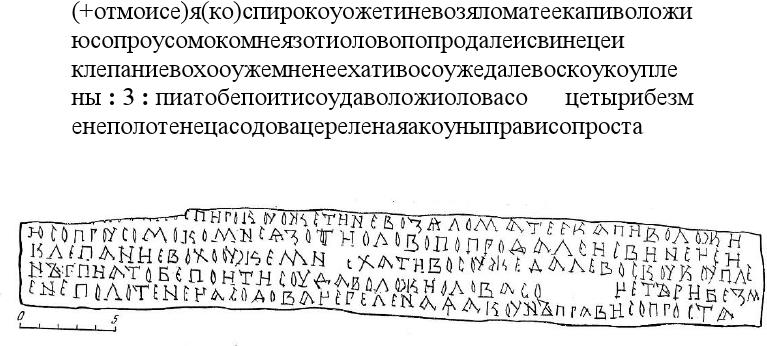 (3) Издатели предполагают, что документ был написан профессиональным писцом, что подтверждается книжным почерком и почти полным отсутствием новгородских диалектизмов.