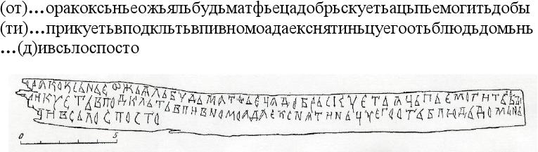 (1) Перевод: "…От Микифора (?) к Оксенье. Если поймали Матфейца, хорошо его скуйте, а цепи сумейте достать, (да)…прикуйте в пивном подклете. Поручите его Кснятинцу, пусть стережет до моего приезда…Сразу же (пое)ди в село".