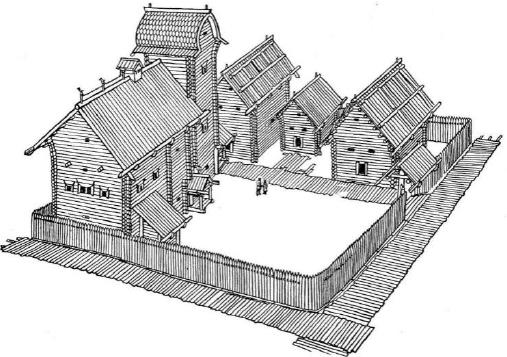 Рис. 30. Великий Новгород. Усадьба новгородского художника-иконописца Олисея Гречи-на (XII в.; реконструкция Г. В. Борисевича).