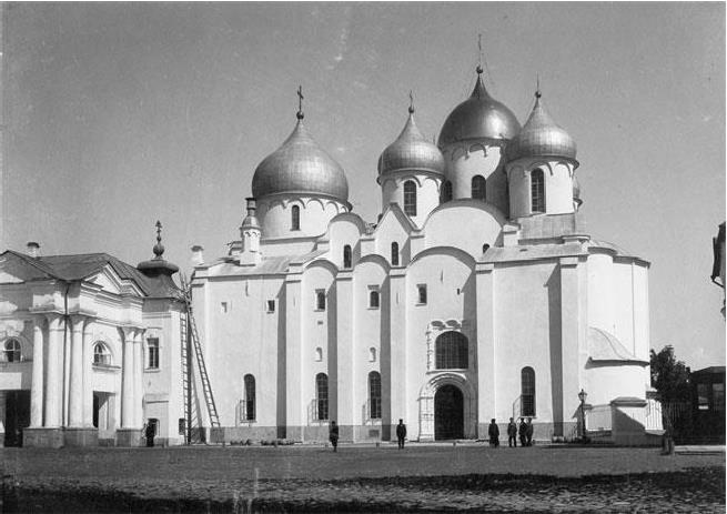 Рис. 33. Великий Новгород: Софийский собор (возводился в 1045–1052 гг.) – место хранения новгородской казны и государственных документов. [Фотография 1900 г.].