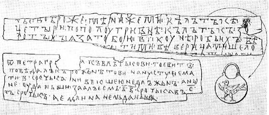 Рис. 40. НБГ 335 с просьбой о приобретении ювелирного изделия по образцу, нарисованному на оборотной стороне документа (XII в.).