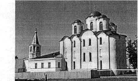 Рис. 41. Великий Новгород. 41.1. Церковь Параскевы-Пятницы на Торгу. Она считалась покровительницей купцов, была возведена в 1207 г. (ей предшествовали две деревянных – 1156 и 1191 гг.), по пятницам открывался новгородский Торг. Церковь выглядит почти идентично первоначальной; 41.2. Никольская церковь, заложена в 1113 г., освящена в 1136 г.