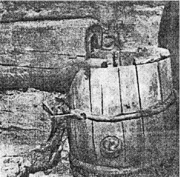 Рис. 44. Великий Новгород:44.1. Мостовые, укрепленные слоем челюстей животных (XII в.). [А. В. Арциховский. Раскопки восточной части Дворища в Новгороде, с. 159]; 44.2. узел водоотвода – труба и бочка-отстойник (XII в.). [В. Л. Янин. Великий Новгород / По следам древних культур, с. 233].