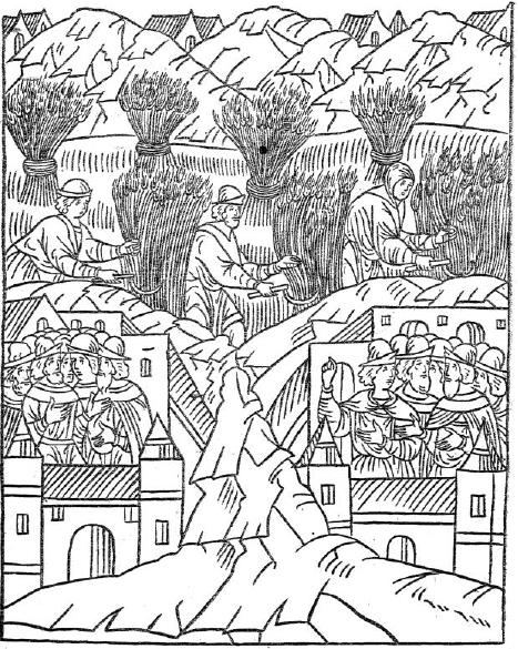 Рис. 45. Древнерусское сельское хозяйство: жатва. [Летописная миниатюра].