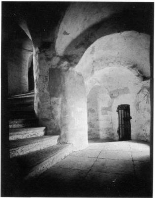 Рис. 46. Древнерусская церковная и монастырская экономика: 46.1.Имущество и сбор торговой пошлины (во всем десятое). [Летописная миниатюра]; 46.2. Новгородская область. Юрьев монастырь. Лестничная башня – место хранения казны (XII в.). [По древнерусским городам, с. 105]; 46.3. Слиток серебра (около 10 г; надпись: попове). [НБГ 1993, с. 116]; 46.4. Юрьев монастырь (основан в 1030 г., перестроен в каменный в 1119 г.). [Почтовая открытка до 1917 г.].