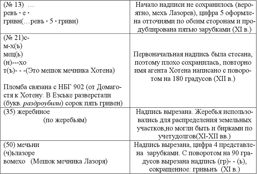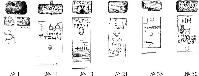 Надписи новгородских бирок-замков (пломб-цилиндров)