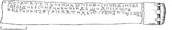 Рис. 48. НБГ 421 с отцовским сообщением (справа – прорези для крепления; XII в.).