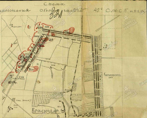 Схема положения обороны частей 40-й омсб на 14.02.1943 г.