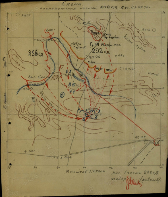 Схема расположения частей 292-й сд 23.09.1942 г.