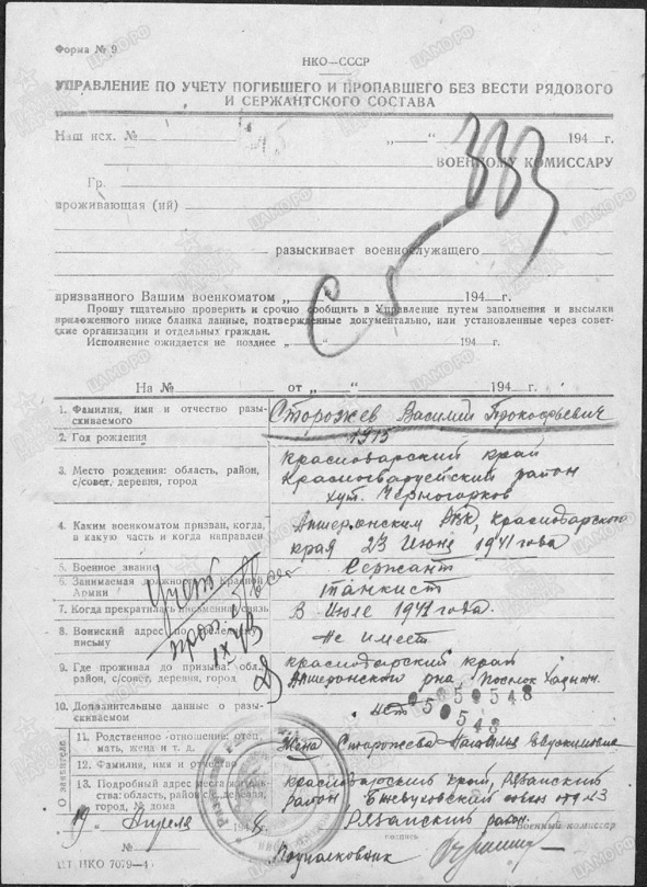 Сторожев В. П. фото с карточки военкомата
