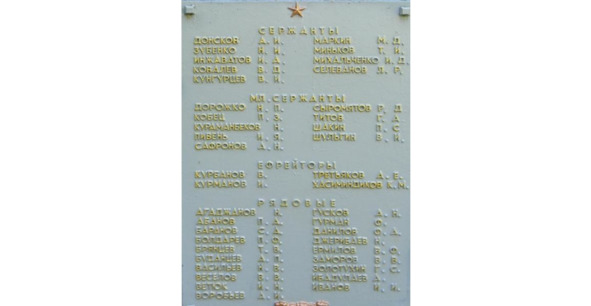 Мемориальная плита с именем Н. П. Дорожко на воинской братской могиле 1943 г.