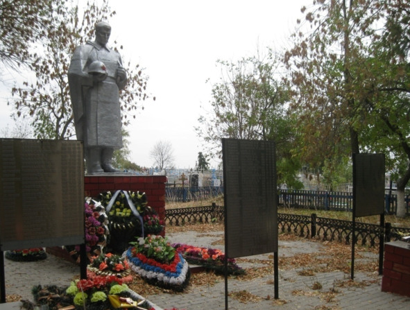 В 1957 г. был поставлен обелиск на братской могиле №390. Здесь похоронены воины 6-й Армии Воронежского фронта, умершие от ран в 1942 году в полевом передвижном госпитале, расположенном в с. В-Икорец. В 1967 г. в память о погибших земляках установлен на постаменте скульптурный памятник «Солдат прощается с павшими товарищами». По обе стороны от памятника тумбы с фамилиями погибших воинов. Расположен памятник на улице Центральная.