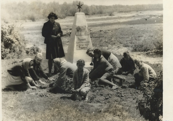 Ученики школы №17 убирают могилу П. М. Метейко. Май 1968 г.