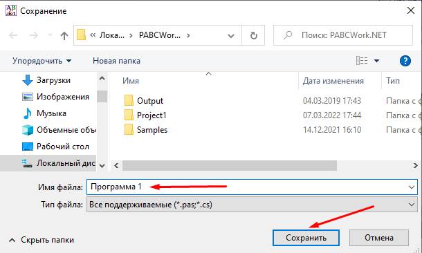 Выберите папку сохранения, введите имя файла и нажмите кнопку Сохранить.