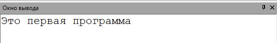 Запустите программу. Вы увидите результат, такой же, как и в предыдущем случае. Но теперь для хранения строки ‘Это первая программа’ используется переменная строкового типа str. Строковый тип имеет название string. Значение строки выводится на экран оператором вывода writeln(str). Таким образом, оператор вывода может быть использован как для вывода строк, так и для вывода значений переменных.