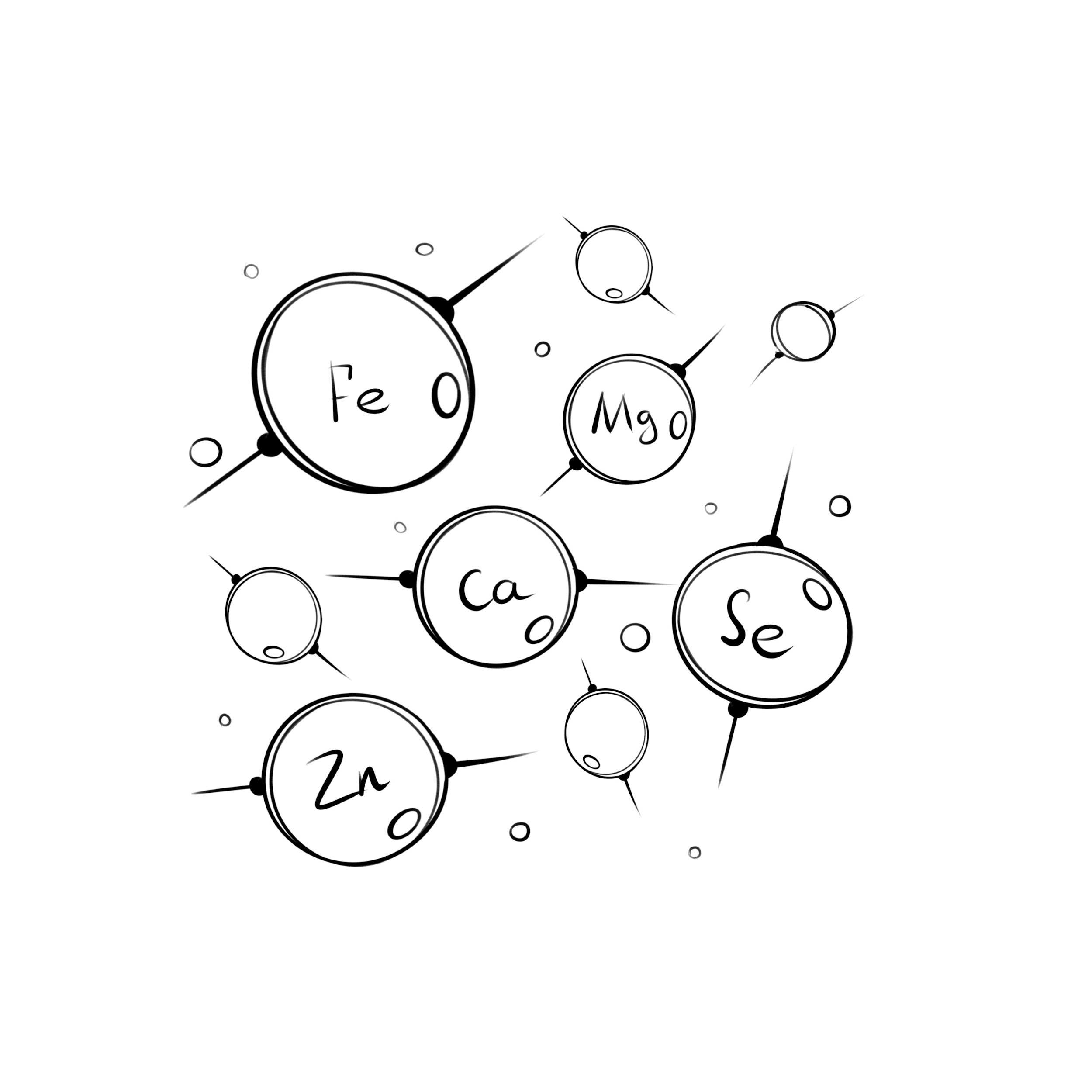 Так же, в организме присутствуют микроэлементы их доля 0,05% : фтор, железо, цинк, медь, кобальт, марганец, йод, селен.