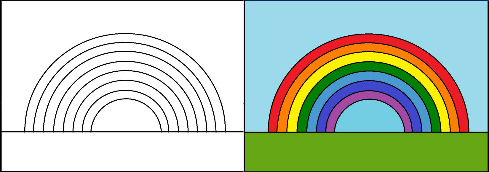 Сегодня мы с вами нарисуем радугу. Назовите цвета, которые в ней есть (красный, синий и т.д. Дети называют цвета возможно не соблюдая последовательность).