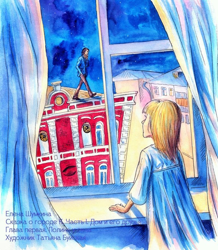 Дом, два его пассажира – домовой и девочка, и тополь отправились в дорогу, а путь им предстоял неблизкий. Домовой сидел на самом верху, на углу, как можно дальше от девочки. А девочка осторожно выглядывала из окна второго этажа, тщательно завёрнутая в одеяло, и дивилась. Иногда Полина словно ёжилась от мерных покачиваний дома, и личико её кривилось от боли. В этот момент у спутников всё сжималось внутри, и желание помочь преодолевало все предстоящие страхи. Пока друзья шли по городу, было не страшно, улицы освещались, дома плавно сходились и расходились, словно в танце, деревья оживлённо болтали. По дороге друзьям даже встретились бронзовые дядя Яша и стажёр10, они, кажется, шли рыбачить. Добрый дом Пахом рассказывал Полине разные истории, чтобы как-то развлечь юную гостью. Девочка смеялась.