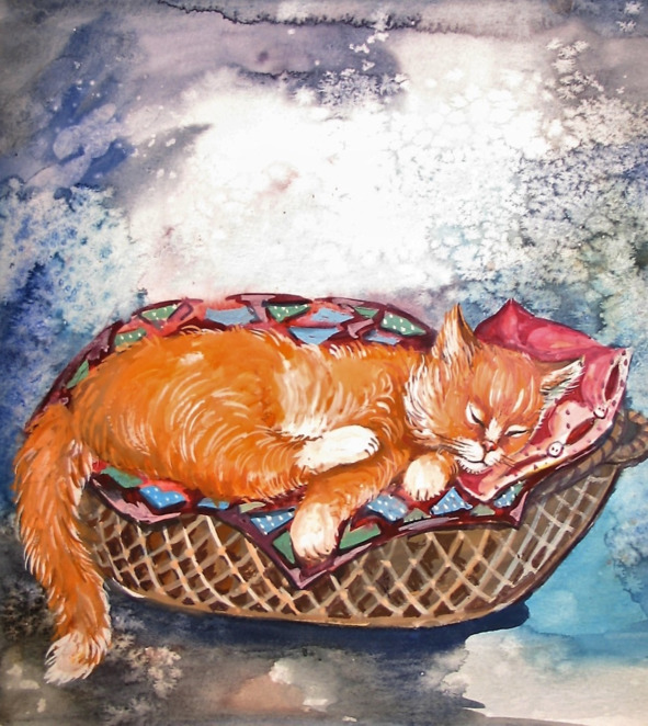Спит рыжий и славный котенок