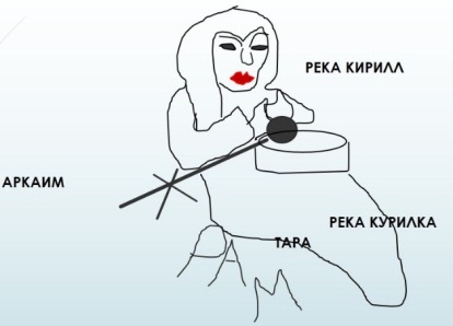 Шива берёт округлый предмет у медведя (от созвездия Медведицы прислали Землю) и протягивает женщине над кругом тора Руси (Аркаим, храм Ариев). Дом Шивы находится в районе созвездий Медведиц и Льва. Там находится созвездие Волопаса, где есть звезда Арктур, возраст которой почти равен возрасту Вселенной. Это место есть небесное пребывание Богов, Высших Духов, в пределе Огненного Мира. Другое рельефное изображение Шивы нарисовано в Сибири, в районе Горной Шории: