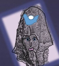 Буквы в надписи «Шива» идут по его лицу и вдоль уха, рядом слово «трон», а от края головы и вдоль лба написано «Мориа», который упоминается в книгах Елены Рерих как Учитель человечества. Мы видим выпячивание теменной области головы, что обозначает развитие головного центра. Понятно, что Шива есть Учитель Мориа, создатель Вселенной. Портрет из первых рук, что называется.