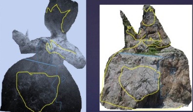 В Славянке Приморья есть камень, верхняя часть которого вылита как женщина, держащая руки на животе и, в то же время, правая рука поднята вверх и держит овал: