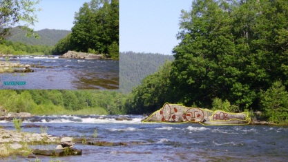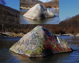 На притоке реки Кема Приморья лежит камень в виде лежащего человекоподобного существа: