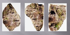 В ней же, в районе носа животного, выбито человеческое лицо с изображением птицы на лбу:
